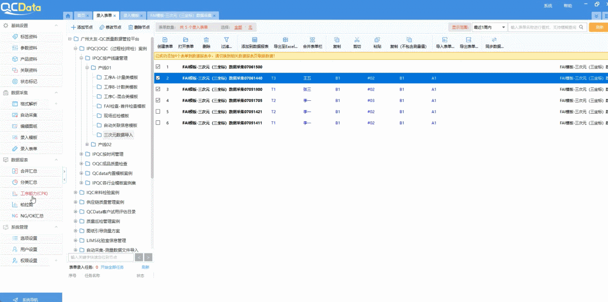 制造業(yè)搞質(zhì)量管控,最怕啥?數(shù)據(jù)不準(zhǔn)、反饋慢、問題找不到根!傳統(tǒng)靠人工抄表、Excel算數(shù)的日子早就過時(shí)了。太友質(zhì)量管理軟件(www.xahuitu.com)直接給你整一套“數(shù)據(jù)快充”方案——機(jī)器跑數(shù)據(jù)、系統(tǒng)做采集分析,質(zhì)量問題剛冒頭就被摁住,生產(chǎn)效率唰唰往上漲。 1、數(shù)據(jù)采集直連設(shè)備 質(zhì)檢員不用再拿卡尺戳零件了!太友質(zhì)量管理軟件支持直接連三坐標(biāo)、千分尺、電子秤等設(shè)備,數(shù)據(jù)秒級(jí)上傳云端。那些高價(jià)進(jìn)口儀器的原始數(shù)據(jù)文件(比如CMM測量報(bào)告),系統(tǒng)直接解析成表格,省去人工錄入的麻煩。 2、智能分析一鍵生成 數(shù)據(jù)堆成山?…