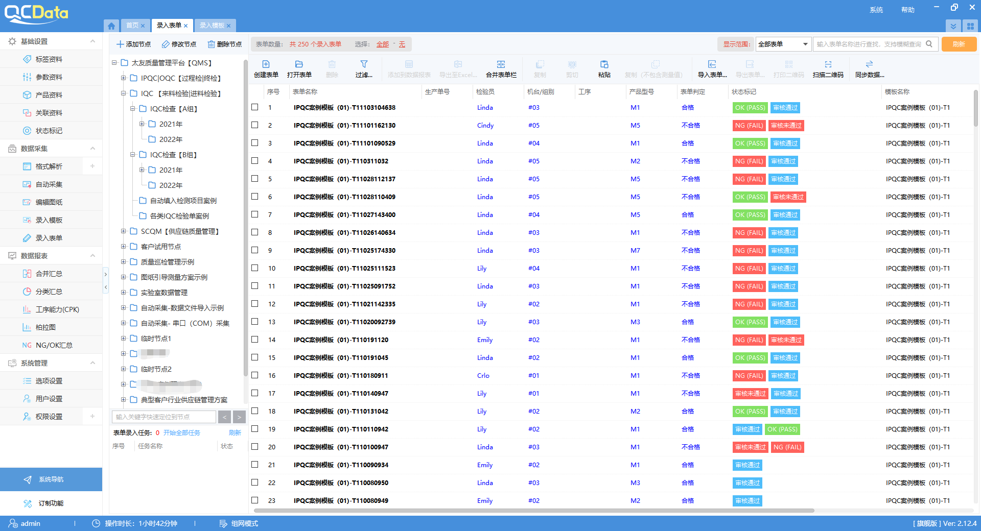 完成培訓后,系統即可正式上線。質量檢查人員將每天按時采集質量數據并記錄在檢驗單中,表格化的檢驗單有助于提高數據錄入效率并方便管理。